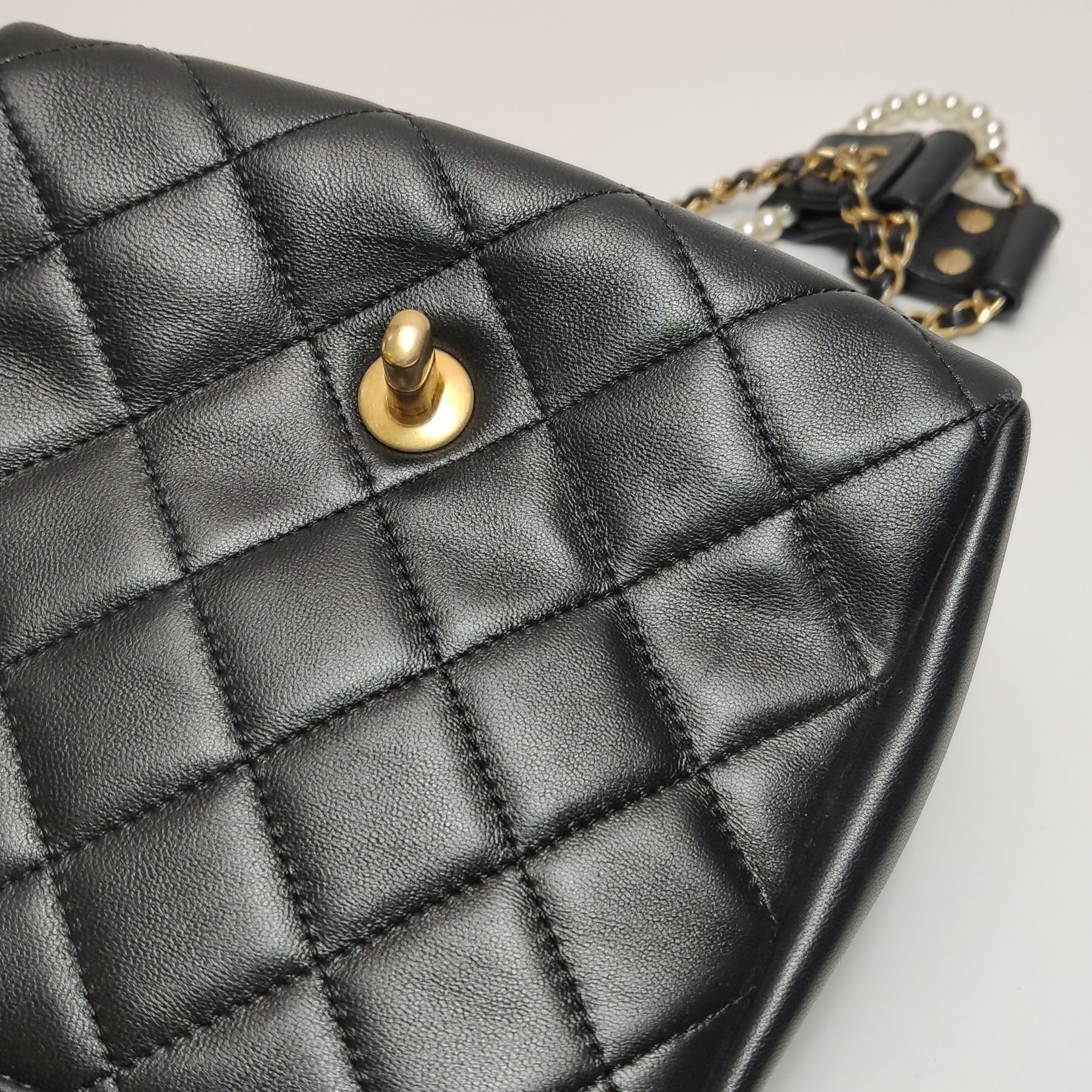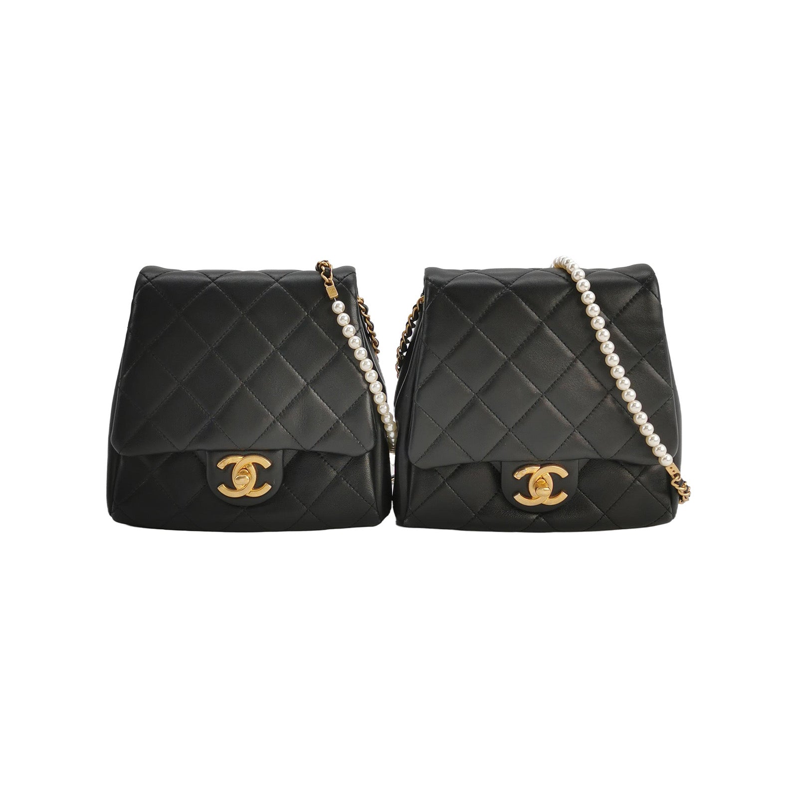 Exterior Details (Rank BC - Decent): This highly unique runway piece has been extensively enjoyed and exhibits obvious, consistent signs of its journey. There is significant wear throughout, including noticeable scratches, distinct rubbing to the delicate lambskin edges and corners of both bags, and potential natural wear or loss of lustre to the pearl details. The gold-tone CC turn-locks display clear surface scratches and typical tarnishing. Despite these obvious signs of heavy love, this avant-garde duo proudly retains its historical runway charm and remains in a functional condition for statement wear.