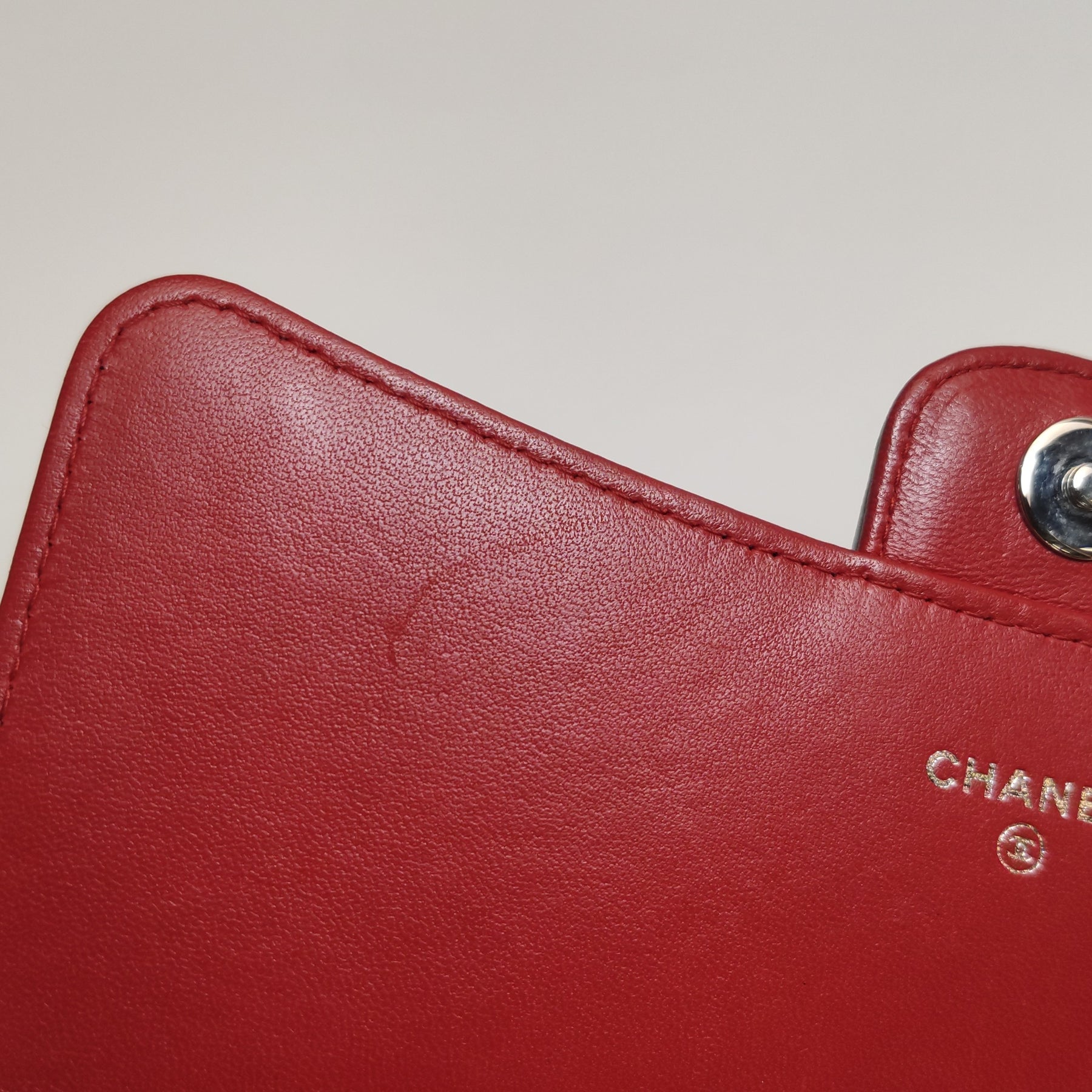 Hardware: The silver-tone CC logo and chain remain bright, with minor hairline scratches visible upon close inspection.