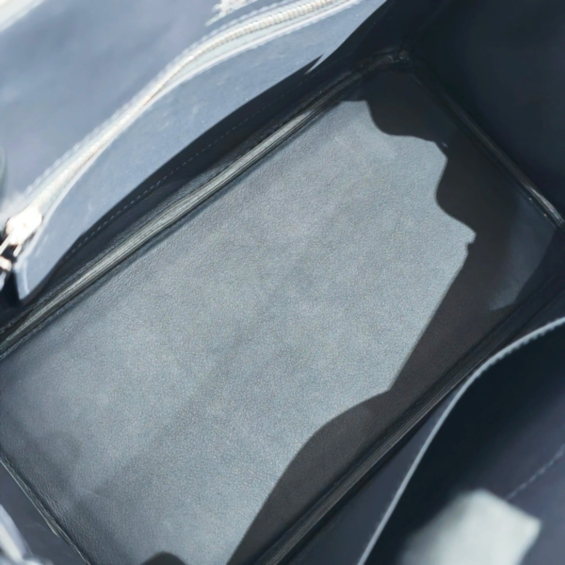 Fastening: Open top design characteristic of the Shadow Birkin's relaxed aesthetic.