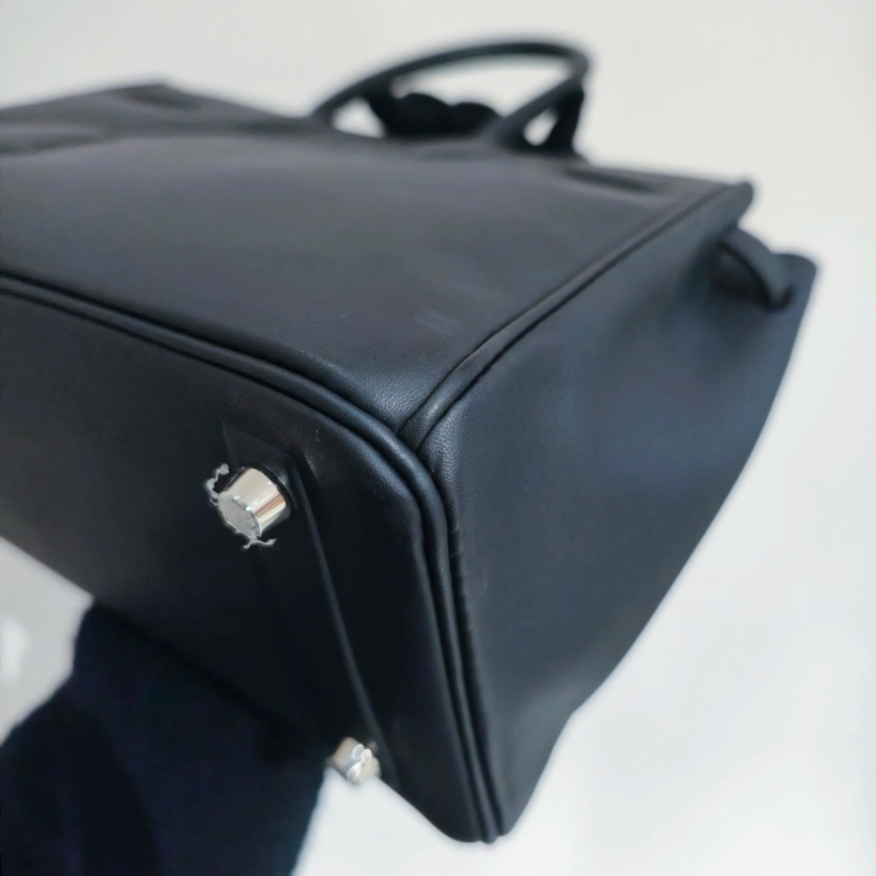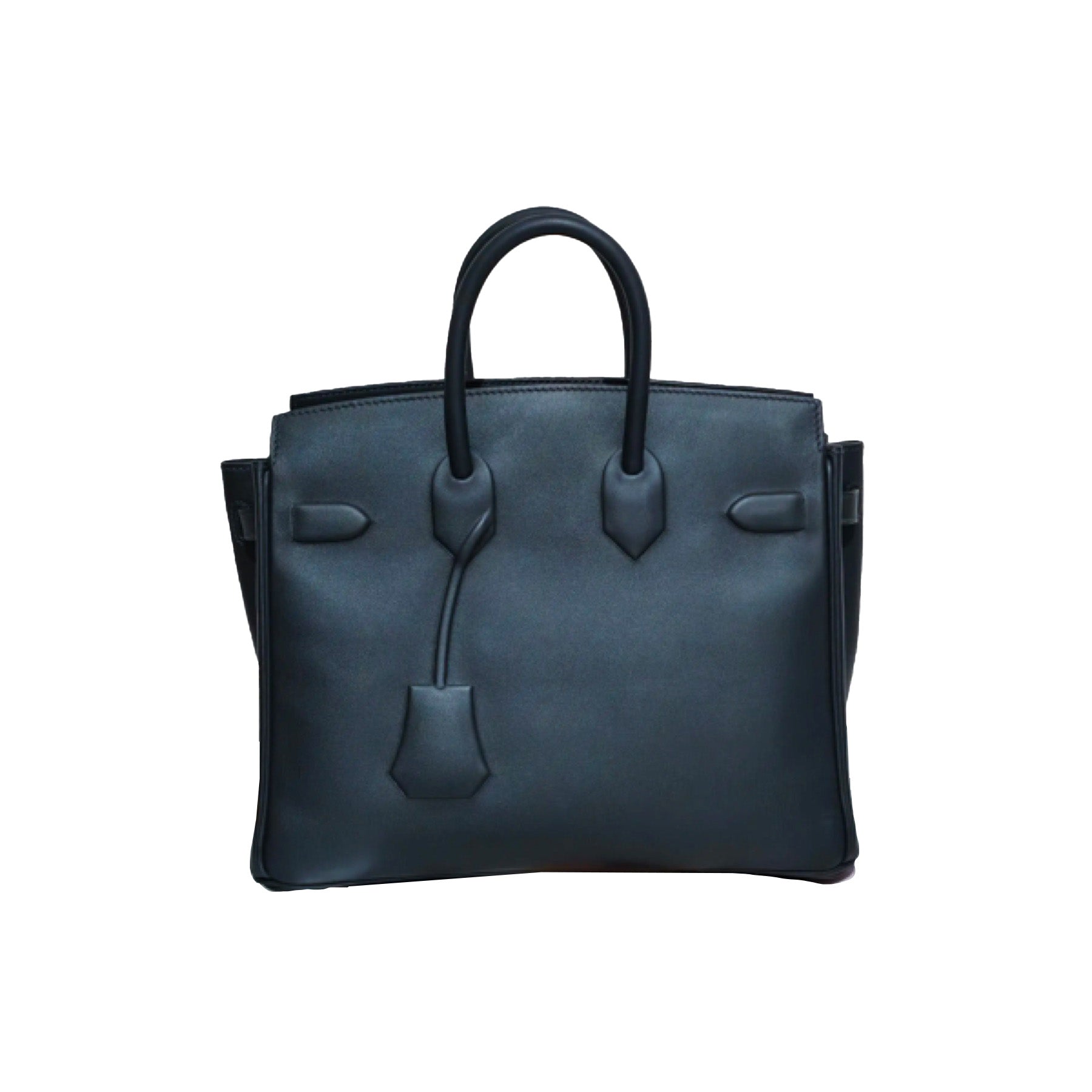 Exterior: Exceptionally smooth and buttery Swift leather in a deep, versatile black, featuring the genius trompe l'œil embossed detailing of the classic Birkin flap, sangles, and clochette.