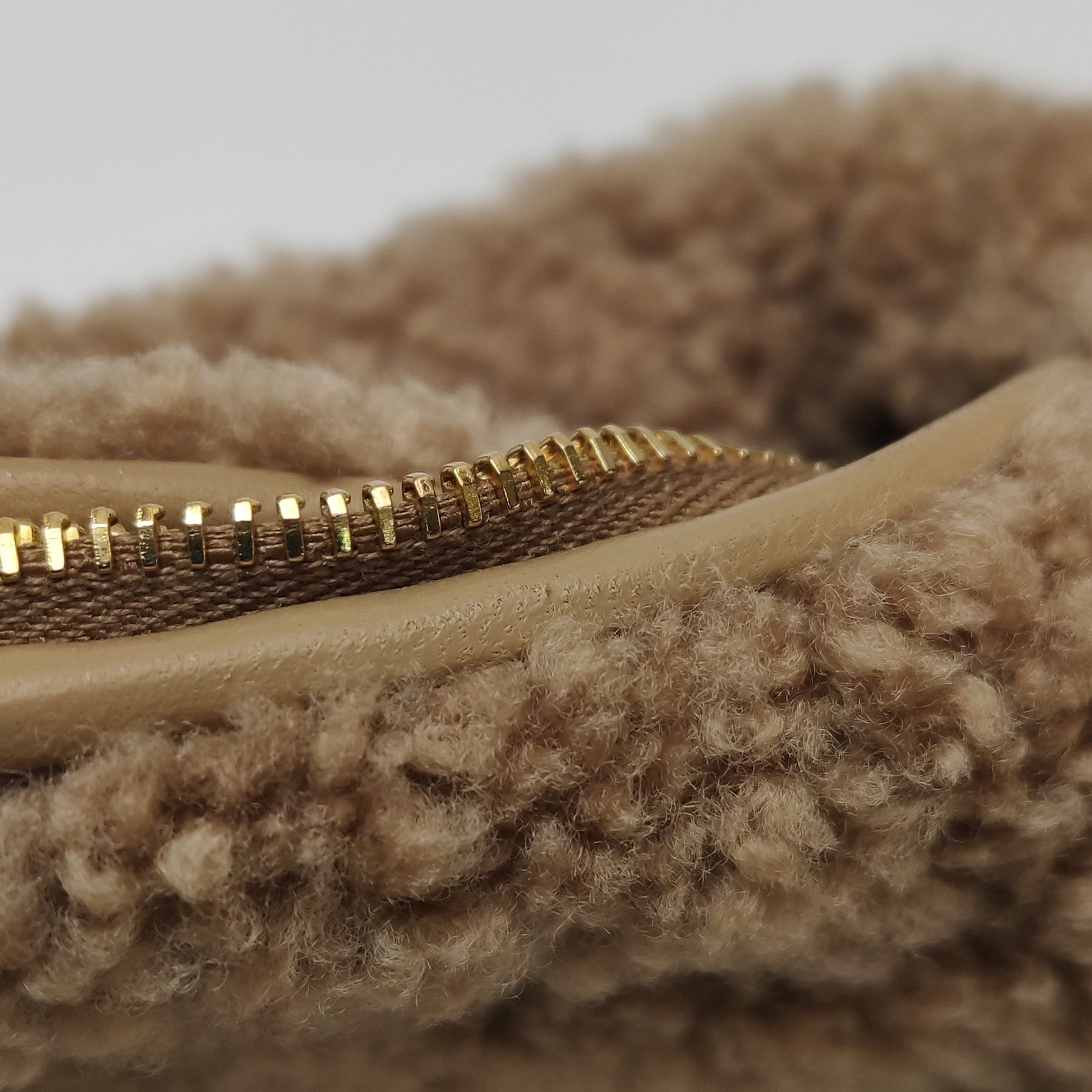 Hardware: Classic gold-tone hardware (Adding a luminous, luxurious warmth against the earthy, tactile shearling)